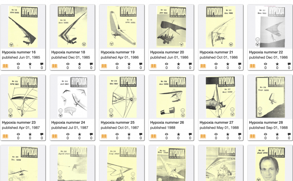 Nu finns ett gäng nummer ur den tidigare svenska hängflygshistorien inskannade och uppladdade! Man kan bl a läsa om olika resor, flygställen i Sverige, tävlingar och resultat, tips, följa hur regelverket utvecklades, när det nuvarande utbildningssystemet togs fram med mera. Mycket intressant!